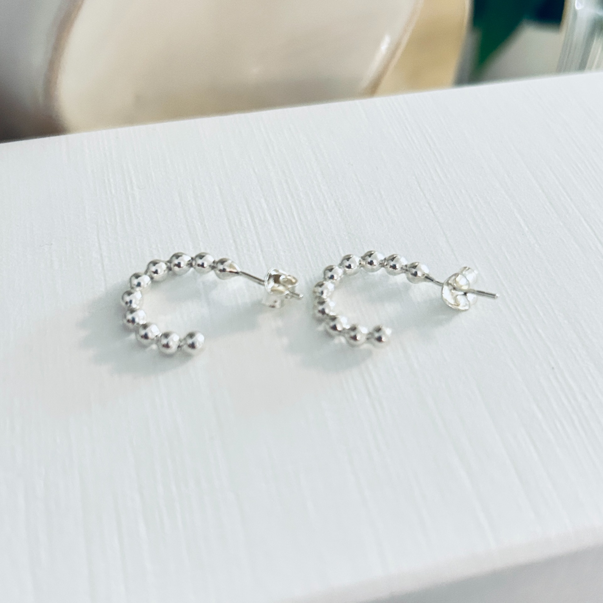 Handgjorda örhängen i 925 sterlingsilver skapade av kultråd som formar en stilren båge. Den blanka ytan reflekterar ljuset och ger smycket en levande känsla.