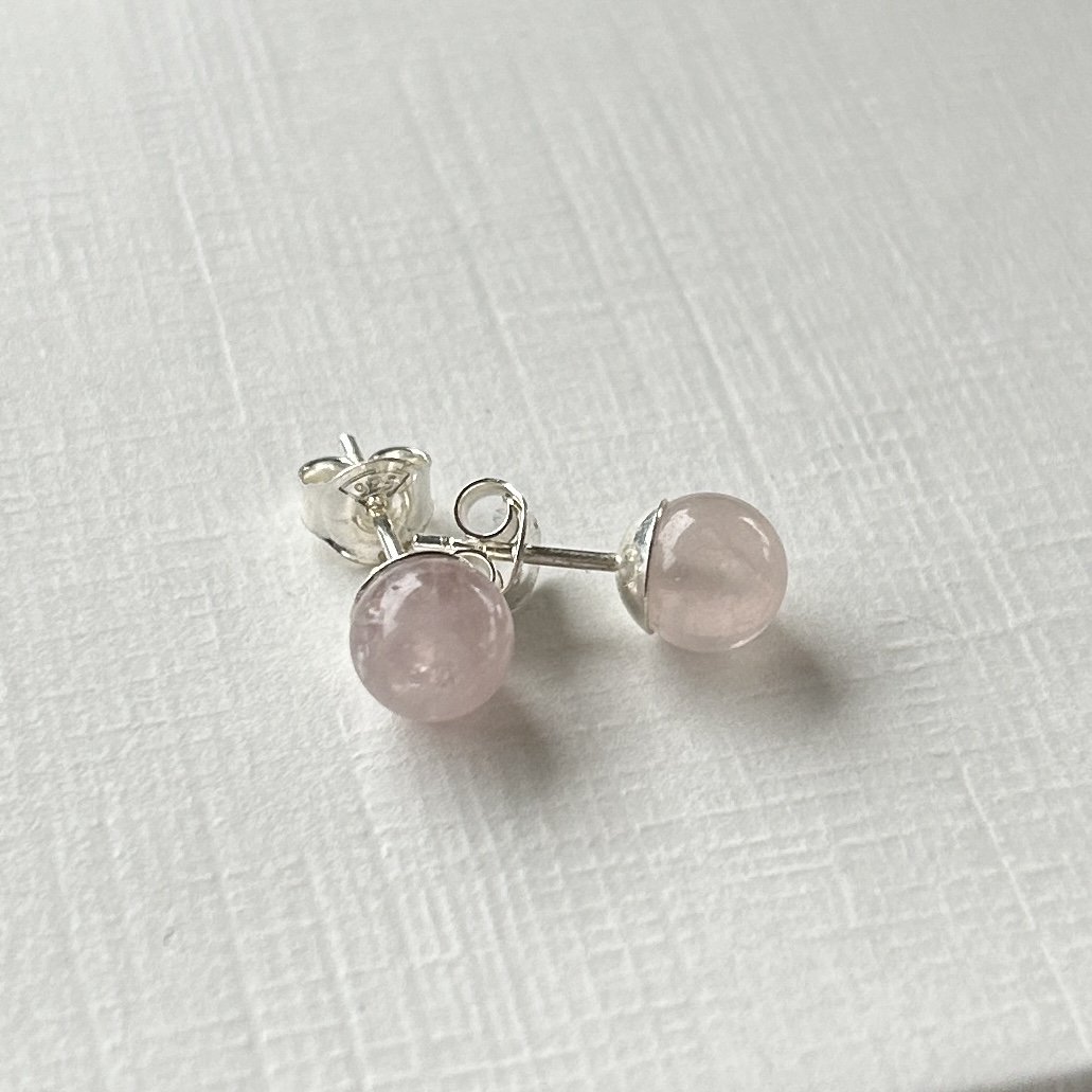 Stilrena handgjorda örhängen i äkta silver med Rosenkvarts - kärlekens sten
