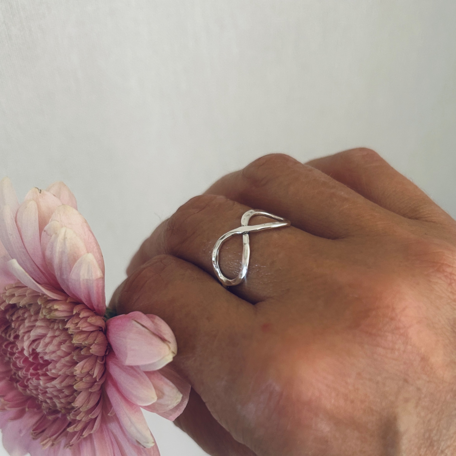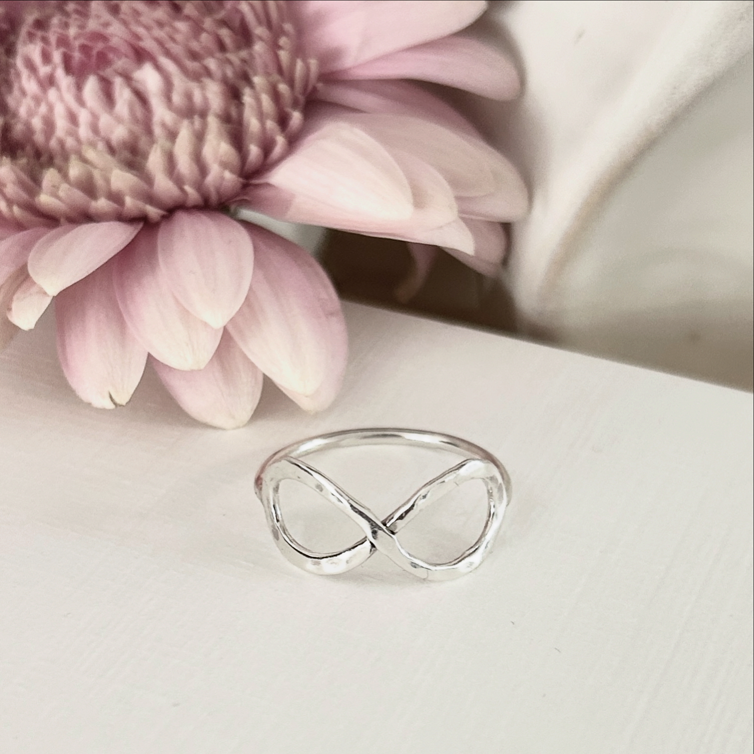 Infinity-tecknet står för evighet, balans och livets kretslopp – en meningsfull ring att bära själv eller ge bort som gåva.